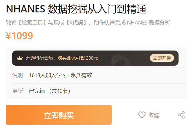 NHANES数据挖掘从入门到精通1099r免费试听,本课程是否适合你?00【直播回放-限免5天】如何高效利用NHANES数据库发SCI?.mp401.【试听】NHANES数据库包含哪些变量?适合什么科室?.mp402.【试听】5分钟看懂一篇5分NHANES数据挖掘文献!.mp403.【试听】本课程如何带你快速发表自己的NHANES数据挖掘文章?.mp404.【试听】如何...