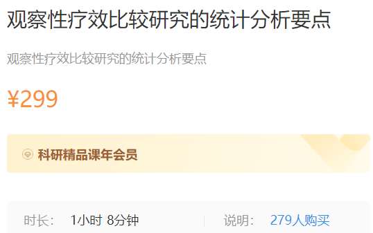 观察性疗效比较研究的统计分析要点梅花斯笔记299第1章 观察性疗效比较研究的统计分析要点第1节 名师解读观察性疗效比较研究的统计分析要点01:08:04...