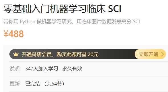 零基础入门机器学习临床SCI-dxy学习笔记488 试播 【试播】机器学习在临床研究中的应用实例22分11秒 【试播】Python 在临床研究中的应用与课程介绍13分57秒 【试播】机器学习临床 SCI 思路...