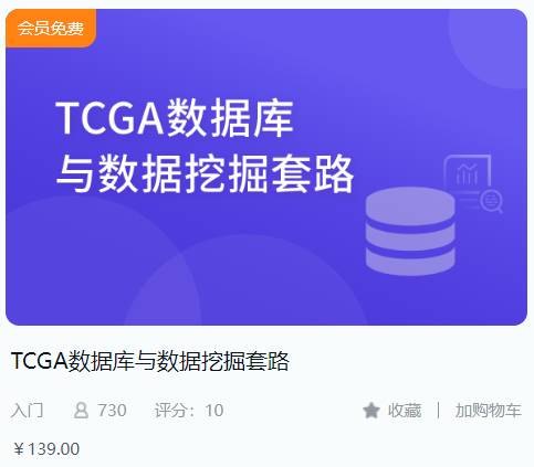 TCGA数据库与数据挖掘套路139r课程目录1 tcga数据库与数据挖掘套路 (00:17:36)2 tcga数据挖掘实战入门 (00:18:50)3 数据检索演示加下载演示 (00:33:51)4 5分tcga挖掘sci复现 (00:45:09)5 代码 差异分析 (00:59:05)6 在线工具 差异分析 (00:14:22)7 代码 功能富集分析 (00:07:53)8 在线工具 功能富集分析 (00...
