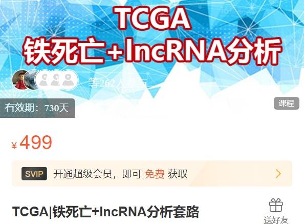 TCGA|铁死亡+lncRNA分析套路499r课程目录章节1:参考资料下载 (2 任务)01 参考资料下载—TCGA|铁死亡+lncRNA分析套路02 生信学习黄金搭档-组学大讲堂云服务器 文档章节2:铁死亡相关lncRNA分析文献讲解 (1 任务)03 铁死亡相关lncRNA分析文献讲解 视频|13分钟43秒章节3:铁死亡相关lncRNA分析实操 (7 任务)04 TCGA数据下载与...