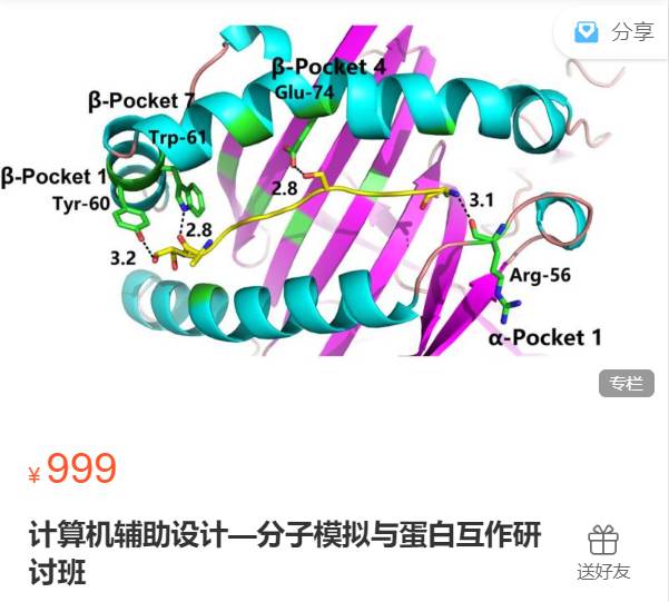 计算机辅助设计—分子模拟与蛋白互作研讨班999r课程简介计算生物学领域的研究进展极大地加深了我们对和疾病密切相关的分子靶标的认识。所有生命过程的实现都是相应蛋白质发挥相应功能实现的,然而,如何有效地利用基本生物学信息,还需要我们从分子甚至原子水平上来掌握生物大分子的三维结构和相关分子之间 (蛋白质、核酸、...