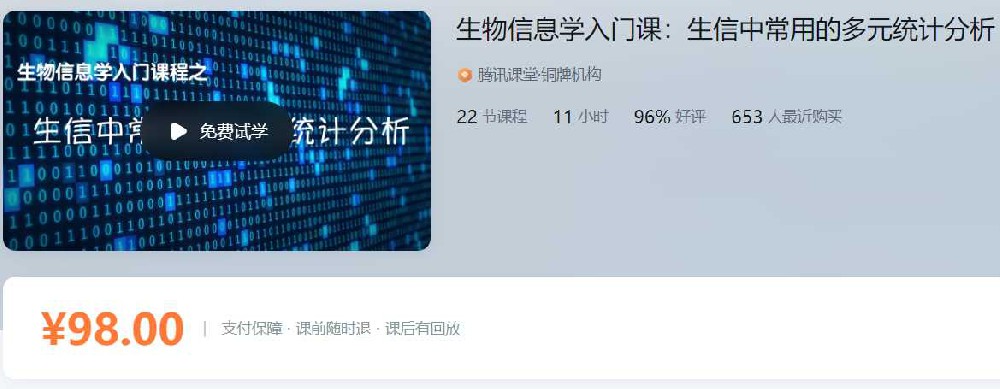 生物信息学入门课:生信中常用的多元统计分析目录98 01课程说明 【回放】课程说明及安排(2月16日 09:30-10:00) 免费试学 02线性代数基础 【回放】从空间变换的角度理解矩阵(2月16日 10:...