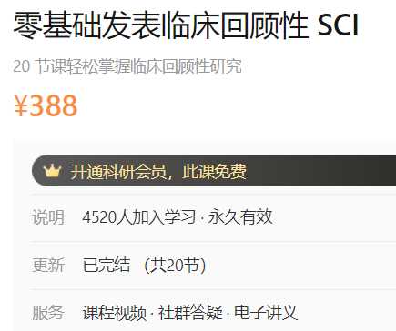 零基础发表临床回顾性SCI目录388 试听 | 临床医生可以做哪些回顾性研究?9分53秒 试听|如何架构一篇回顾性研究文章?8分8秒 试听 | 倾向性匹配评分是什么?如何应用在回顾性研究中...