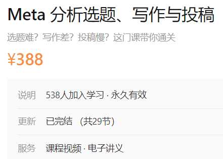 Meta分析零基础实用教程目录388 第一章 Meta 分析基础知识 1.0 零基础如何入门 Meta 分析?需要提前掌握哪些技能?8分35秒 1.1 Meta 分析选题原则与方法(已更新)24分59秒 1.2 Meta 分析选题实...