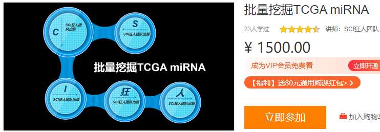 批量挖掘TCGA miRNA目录1500 课时1视频课程介绍12:48 课时2视频批量获取TCGA miRNA03:33 课时3视频筛选差异的miRNA23:57 课时4视频单因素Cox回归数据准备17:17 课时5视频单因素Cox回归06:00 课时6视频...